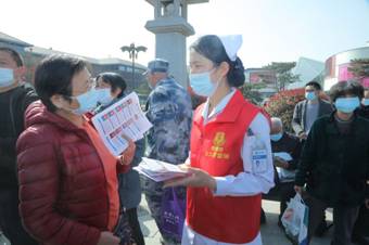 西京医院护士在义诊现场发放健康科普宣传资料。