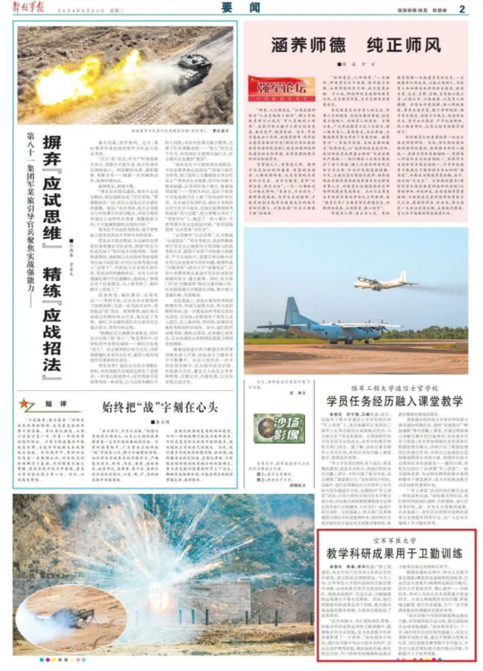 “此次训练中,我们紧贴部队需要,将教学科研成果运用到卫勤保障中,既锤炼学员专业技能,也为改进提升科研质量积累了一手资料。”该校领导介绍说,他们在训练中突出生物安全防护、空运后送护理等技能,模拟战场环境,细化想定内容,专门将研发的隔离转运救治方舱等设备运用到相关环节。