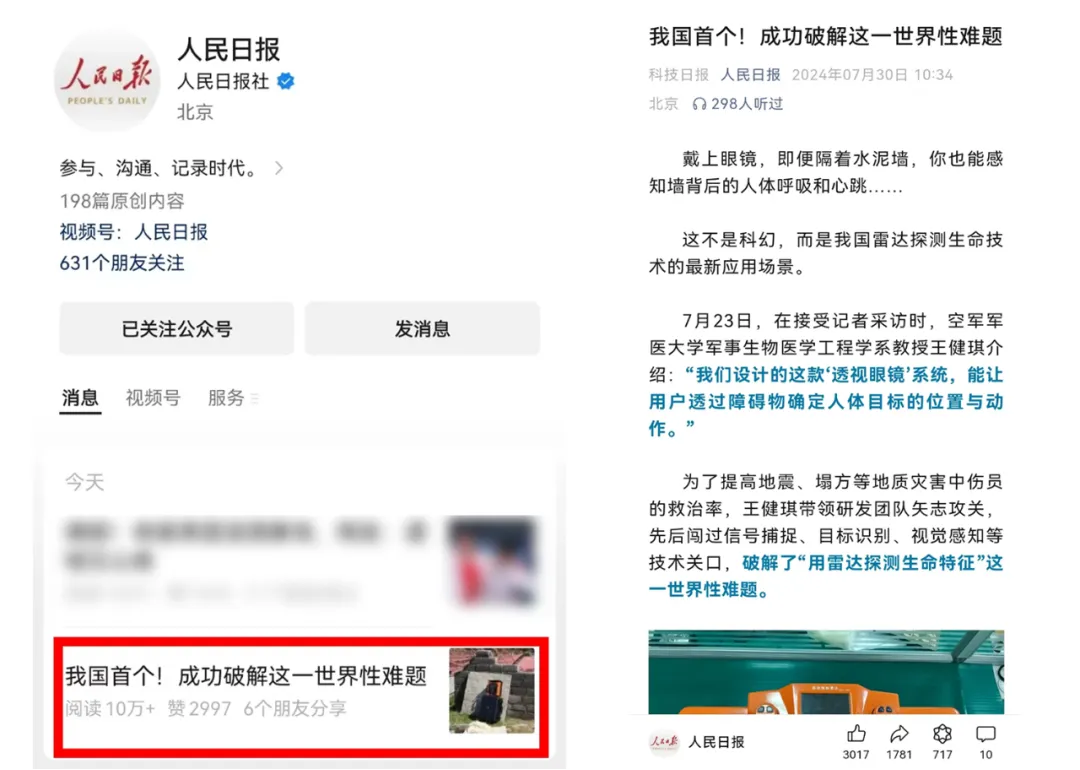 在此基础上,团队又先后破解了生理微动、运动速度等感知难题,开发出信号增强、特征提取的机器学习模型……经过6年的接续努力,我国首个超表面生物雷达“透视眼镜”系统诞生。