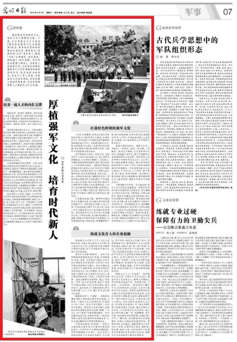 强军事业呼唤强军文化,强军文化汇聚强军力量。日前,中央军委办公厅印发的《繁荣发展强军文化实施纲要》指出,要聚焦用党的创新理论武装全军、教育官兵,着眼培养“四有”革命军人、锻造“四铁”过硬部队,励志铸魂、砺战激气、砺行厚德。军队院校承载着立德树人、为战育人的使命任务,必须深刻理解把握强军文化对军事教育的滋养浸润作用,坚持向战为战导向,坚持化人育人功能,丰富强军文化服务供给,为培养德才兼备的高素质、专业化新型军事人才提供有力文化支撑。