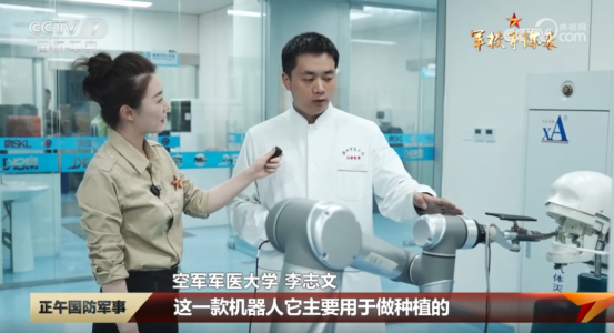 能想象吗?有一天机器人给你做口腔手术,现在它正在给病人种牙,医生只需要把术前规划输入到系统里,机器人就能在医生的监控之下自主完成手术。种一颗牙,只需要10分钟,这是学校自主研发的。