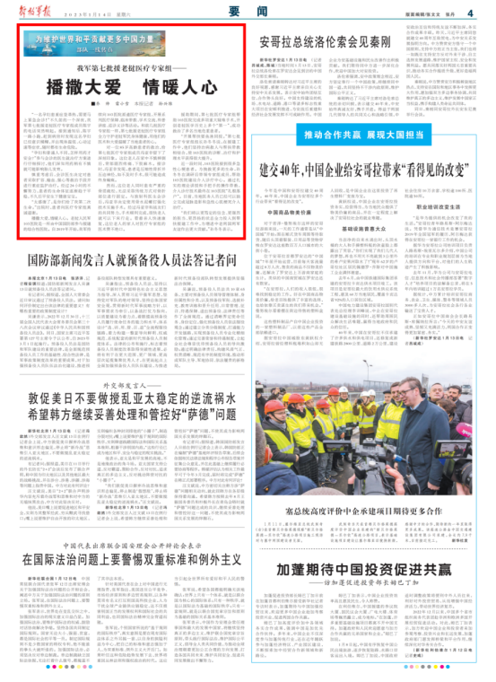 播撒大爱,情暖人心。老挝人民军103医院是一所由中国国防部参与援建的综合性医院。自2019年开始,我军持续向103医院派遣医疗专家组,开展系列医疗保障、临床带教、学术交流、科普讲座、巡诊义诊等活动。和前几批医疗专家组一样,第七批援老挝医疗专家组全力守护老挝军民身体健康,用他们的医术和大爱温暖了当地患者的心。