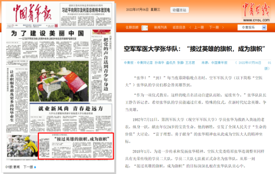 1982年7月11日,第四军医大学(现beat365中文官方网站)学员张华为救跌入粪池的老农,纵身一跃,献出年仅24岁的宝贵生命。他的牺牲,引发了全国人民关于“生命的价值”大讨论,“富于理想、勇于献身”的张华精神也从此成为空医大人的精神坐标。 2018年1月,为进一步传承和发扬张华精神,空医大党委将原张华连调整至同样具有光荣传统的学员二大队,学员二大队七队被正式命名为张华队。从那一刻起,“接过英雄的旗帜,成为旗帜”的目标深深扎根在张华队队员心中。 选拔优秀学员,组建“张华班”;入学第一课,是参观张华荣誉室;学的第一首歌,是张华队队歌……“作为空医大特有的红色基因,张华精神蕴含着丰富的文化基因、现实关照和价值意蕴,是我们培养新时代‘张华传人’的宝贵资源和生动教材。”空医大基础医学院院长、政委齐声表示,青年的价值观并非一朝一夕就能塑造,将仪式教育融入学员的生活日常,是为了更好地培育新时代“张华传人”。 2022年5月3日,张华烈士雕塑前,张华班全体学员举起右手,庄严宣誓:“请党放心,强国有我……”在张华队,结合各项教育活动组织主题班会、演讲比赛,观看红色影视作品,拍摄纪录片,举办张华荣誉室解说员大赛……特色鲜明、形式多样的活动,一直在有条不紊持续进行。 “如何挖掘张华精神的时代价值、讲好新时代张华故事,是我们一直在探索的事。”张华队教导员李岳洋介绍,在张华队,既有从基层部队考上来的战士学员,也有通过高考录取的青年学员。入学之初,学员们的军事体能素质参差不齐。为克服这一短板,张华队建立起了“张华班学员当刀锋、党员骨干当尖兵”的帮带机制。 “为军,即爱军精武,能打胜仗;为医,便勤学苦练,救死扶伤——二者都是照亮前路的明灯。”每逢暑期,学员队都会强化训练,主攻“体能达标”这个突破口。目前,张华队学员3公里体能测试达标率达到100%,并在多轮军事比武竞赛中获得一等奖10余项。 在张华班,特别设立了遴选淘汰机制,“能者上、劣者汰”的氛围时刻引领着学员勇夺第一、力争上游。从立起光荣榜表彰学习训练标兵,到开展优秀笔记、体能成绩上墙活动……张华班的一项项比学赶超举措,由班内试点不断向张华队全面铺开。 “备战大学英语四级考试时,队里每天都利用宿舍楼广播系统插播听力,帮我们‘磨耳朵’。全队四级通过率达到100%。”学员吕垚自豪地说。不仅如此,2018年以来,张华队的专业课成绩总平均分也蝉联年级第一。针对医学院校特色,张华队还鼓励学员积极参与科研、学术活动,不断有学员在国家级比赛中捧回金奖、参加专业学术年会并发表学术论文、获得多项专利授权。 “进了张华队,就做‘张华传人’;走出张华队,就要弘扬张华精神。”英雄精神的感召引领,生发出强大的正能量—— 2018年7月,张华队首届学员涂冰在毕业分配时,以综合排名第一的成绩主动要求进疆赴藏,献身边防,为全体学员作出表率;2021年暑假,刚刚回到江苏老家的学员孙煜博,即刻投身志愿者队伍,为村民展开核酸检测;今年1月,西安新冠肺炎疫情封控期间,张华志愿服务队的队员们为居家隔离人员送水送菜,一跑就是一整天,“但一看到隔离衣上的张华队字样,就一点都不觉得累”…… 近年来,张华队接连被授予“全国大学生社会实践基地”“社会主义核心价值观军地共建共育基地”,先后获评全国“五四红旗团支部”、陕西省“五四红旗团支部”、空军“四铁先进单位”等荣誉称号。