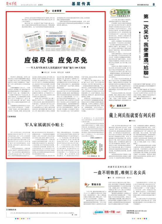 本期刊发的是记者从现场发来的报道。其中,为军人及军队相关人员更好地享受政策保障提出了几点建议和参考,值得关注。