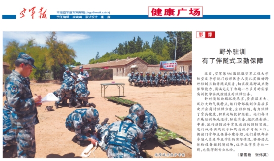 近日,空军第986医院驻空军工程大学防空反导学院门诊部医务人员扎实做好野外驻训卫勤伴随式服务,切实提高野战卫勤保障能力,圆满完成了为期一个多月的实装实训教学实践演练医疗保障任务。