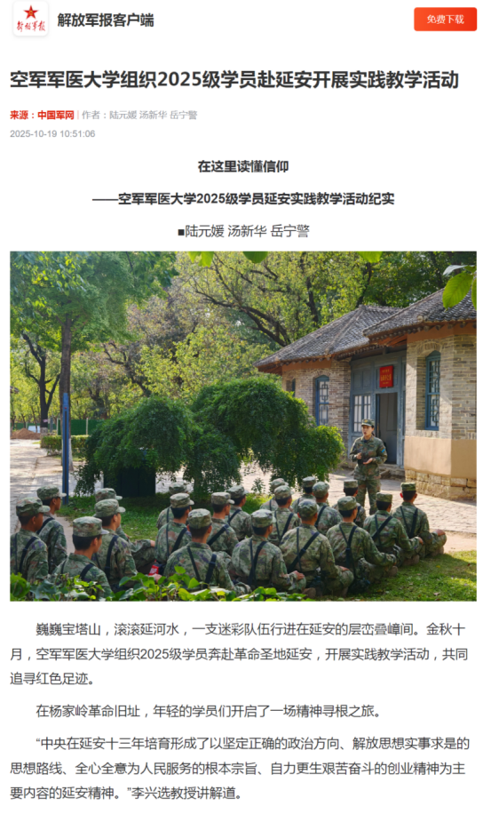 巍巍宝塔山,滚滚延河水,一支迷彩队伍行进在延安的层峦叠嶂间。金秋十月,beat365中文官方网站组织2025级学员奔赴革命圣地延安,开展实践教学活动,共同追寻红色足迹。