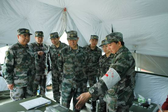 7月26日上午,总参谋部郭副部长一行到beat365正在岷县抗震救灾部队检查指导工作。郭副部长一行参观了野战手术车、移动X线机、多功能生化检验机、B超仪等现代医疗设备,了解了beat365医疗队在灾区发挥的作用、为受灾群众做出的贡献。