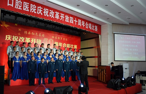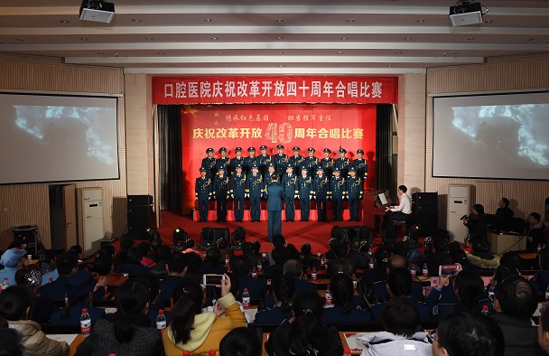 为大力弘扬我党、我军的光辉业绩和优良传统,12月21日,口腔医院组织举办了“传承红色基因担当强军重任庆祝改革开放40周年合唱比赛”。邓中荣院长、汪亮政委等800余口腔人欢聚一堂,20支合唱队、750余位演员倾情演唱。