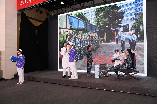 今年是新中国成立70周年,也是空军建军70周年,为弘扬爱国、爱军精神,护士节前夕,医院组织部分护士们在门诊大厅用洋溢青春和热情的快闪,同声歌唱,激情演绎了一曲《我和我的祖国》。同时,中华口腔医学会岳林秘书长、全军护理学会王建荣主任委员,口腔医院邓中荣院长、汪亮政委以及三级教授徐礼鲜主任分别送来了他们亲切的节日祝福。在大会现场,通过LED大屏幕的播放,真情的流露、诚挚的祝愿、震撼的效果,感染了在场的很多人。