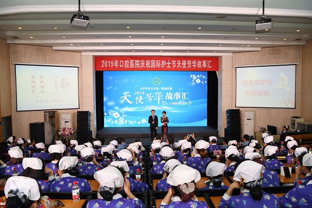 5月9日晚,在第108个国际护士节到来之际,口腔医院以“天使芳华”主题故事汇的形式,在阶梯教室隆重举办了庆祝活动。医院常委、科室主任以及全院护理人员近400余人参加。