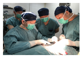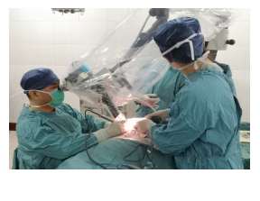 术前,两个科室就同一手术区域,如何设计切口,如何不损伤耳再造需要的皮瓣以及如何不遮挡听力手术进路等问题进行细致沟通。术中,根据手术方案,两个科室密切协作,由耳鼻喉科查定军主任为患儿完成右侧骨桥植入术,由整形外科董立维副教授为患儿完成再造双耳的形态修整术。手术历时5小时55分钟,进程顺利。
