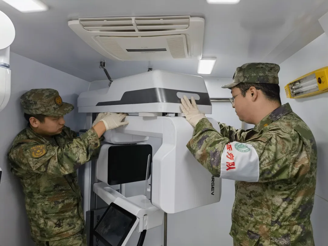 在空军某场站,战士小刘听说口腔医院医疗队的到来,抱着试试看的态度来解决因智齿拔除后异物留存导致伤口反复发炎肿痛的困扰。医疗队制定方案,通过车载CBCT三维重建精准定位异物位置,顺利完成了微创牙槽窝异物取出手术。被牙疼折磨了半年多的小刘终于露出笑容,也给医疗队竖起了大拇指。