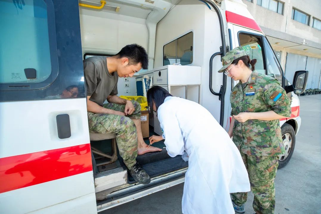 高原酷暑,烈日炎炎,九八六医院派驻门诊部医护人员机动千里为驻训在高原的某大学学员们全程伴随保障,历时40多天的演练中,与官兵一起转战多地、设营搭阵,在实践中不断磨砺战时卫勤保障硬功。