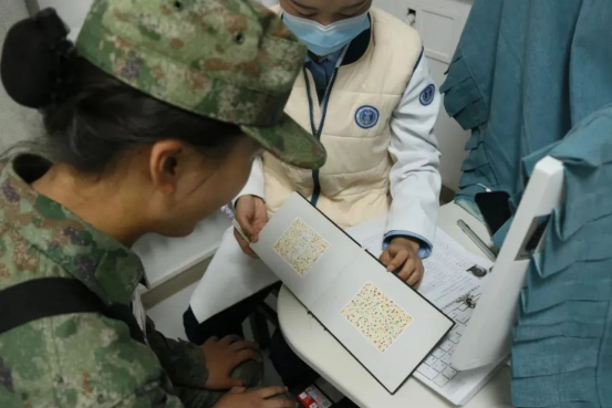 体检现场秩序井然,各项工作高效开展。医护人员严格执行体检标准,通过系统问诊,详细核查新兵们的既往病史;采用标准化视力检测设备进行精确测量,并现场开展用眼健康指导;针对部分新兵在体检中出现的紧张情绪,医护人员以专业素养和人文关怀相结合,在严格遵守操作规范的同时,通过心理疏导缓解压力,充分展现了中心健康管理工作的专业水准与服务温度。
