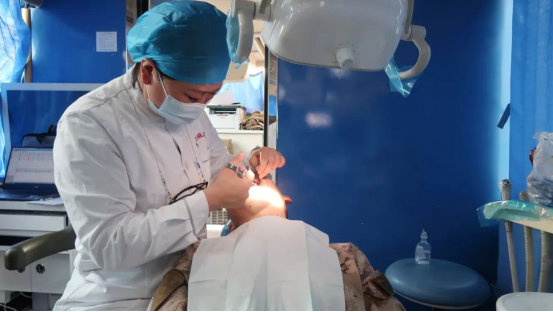 巡诊过程中,医疗队遇到了一位戍边官兵,他最近因严重牙疾连一口热饭都难以下咽——两颗磨牙大面积龋坏,其中一颗已经经历了根尖周炎急慢性期的转变,并且在万米高空风险不可控。考虑到边防任务的特殊性,医疗队通过精细的感染控制、数字化椅旁即刻修复等技术缩短至两小时,为这位官兵解除了病痛。
