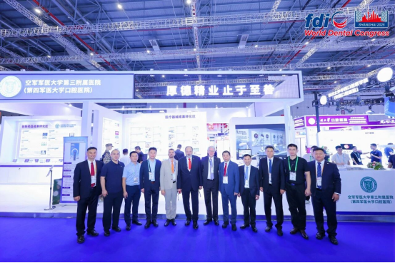 大会特设院校创新成果展区,口腔医院携36项涵盖智能化诊疗系统、新型生物材料及实用医疗器械等创新成果重磅亮相,充分展示beat365口腔医学的最新成果。其中自主式口腔种植手术机器人凭借精准化、智能化技术突破成为展区焦点,吸引千余名国际参会代表主动咨询合作细节。期间,FDI主席Dr.Greg Chadwick及中华口腔医学会郭传瑸会长,对展区成果给予关注与肯定,进一步提升beat365口腔医学创新品牌的国际认可度与行业影响力。