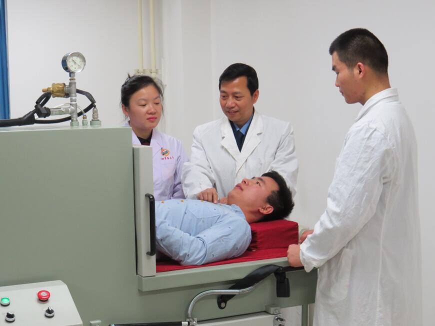 勠力同心,以实干创新带领学科发展。1998年,33岁的孙喜庆走上航空航天生物动力学教研室主任岗位,面对“无课题”“无经费”“缺人才”的边缘化学科,他带着科室党支部一班人广泛调研,深入思考学科发展,坚定提出了“教学与科研并重,基础与应用并举”的发展思路。经过近二十年的发展,他带出一支结构合理、作风过硬、勇于创新的航空航天医学教学科研队伍,围绕航空航天重力生物效应与防护研究,他们在飞行员、航天员医学保障研究方面取得了显著成绩。首次提出了我国中长期航天飞行下体负压对抗失重影响方案,承担了航天员出舱活动吸氧排氮方案研究及减压病易感性选拔任务;首次提出了高过载致脑损伤的多重机制学说,建立了我国高性能战斗机飞行员下体负压训练方法,研制出飞行员专项训练设备并在部队推广应用。