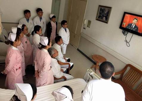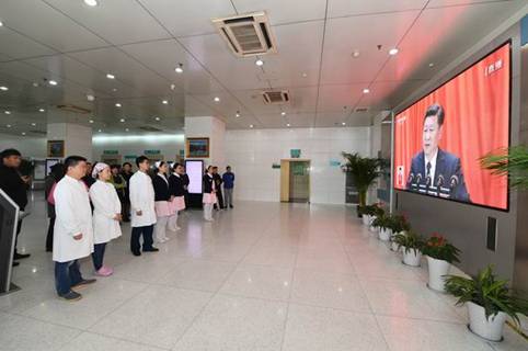 10月18日上午9时,口腔医院以党委中心组扩大学习、临床一线教职员工自发学习等多种形式,收看收听党的十九大开幕会。在院中心会议室,学校机关“双三”机制帮带蹲点领导、院党委常委和机关干部通过观看直播的方式集中学习了十九大报告内容,了解了我国过去五年工作、新时代党的历史使命等内容,院领导还要求大家认真撰写心得体会,深刻认识和把握十九大的重大意义和精神实质。临床科室提前协调临床工作,组织所属人员在候诊大厅收听收看党的十九大开幕会。因临床工作而未能观看的部分医护人员,通过网络、微信等形式,及时学习了讲话精神。医院还利用门诊大楼内LED显示屏,全程播放大会盛况,吸引了前来就诊的众多患者观看。