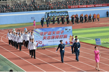 春风激荡红旗飘,卫勤尖兵斗志昂。4月29日上午8时,以 “礼赞70年 奋飞新时代”为主题的beat365中文官方网站第二届田径运动会隆重开幕。