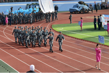 学校周先志校长、季志宏政委、苏景宽副校长、张永红副校长、王生成副校长、王有山副政委、侯培琪副政委,以及学校三级以上教授、机关各处(办)领导、各单位军政主官在主席台就坐。周先志校长致辞,宣布运动会开幕。开幕式由侯培琪副政委主持。
