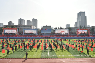 伴随着庄严的国歌,在基础医学院70名学员组成的方队护卫下,鲜艳的五星红旗冉冉升起、迎风飘扬。裁判员代表马涛、运动员代表李远辙分别宣誓。