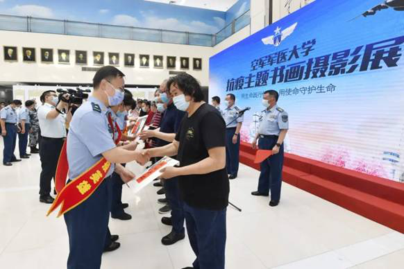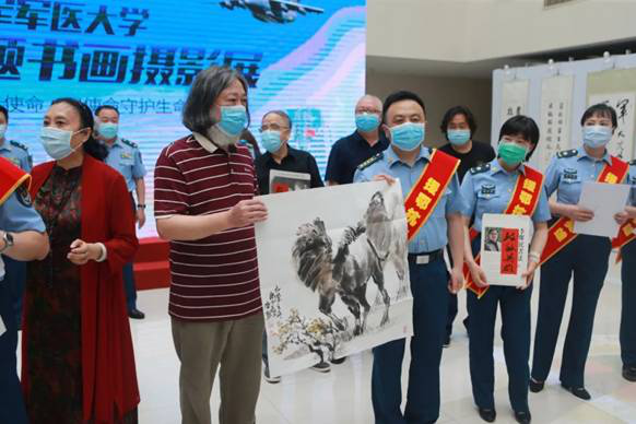 5月21日下午,“用生命践行使命 用使命守护生命”抗疫主题书画摄影展在礼堂中厅开幕。学校张思兵校长、王宝红政委、王有山副政委,机关处(办)领导、各单位主官、各中心领导,抗疫英雄代表,以及陕西人民书画院院长卫双良、陕西省书法家协会原副主席李杰民、陕西省文联副主席肖云儒等11位文化名家参加开幕式。