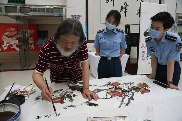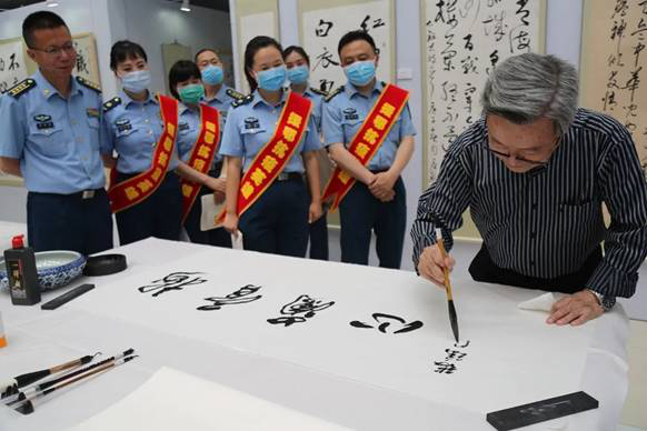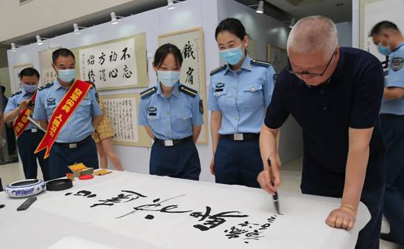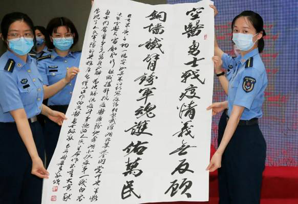 11位名家现场挥毫泼墨,向光荣抗疫、平安归来的医务人员,表达崇高的敬意和真挚的祝福。参观完展览的师生员工一致认为,此次展览旗帜高扬、情怀厚重、品位高雅、意境深远。