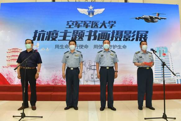王有山副政委主持开幕式并致辞。他讲到,空医大人在抗疫行动中汇聚形成忠诚于党、服务人民的政治品格,闻令而动、使命必达的责任担当,医者大爱、护佑生命的职业操守,舍生忘死、战疫必胜的英雄气概,通过此次展览艺术化呈现,将感人瞬间定格为永恒记忆。全校师生要通过参观展览,学习英雄品质,汲取英雄力量,传承英雄精神,激发崇尚荣誉、献身使命的战斗热情,主动学习先进典型、争当合格军人的行动自觉,在强军强校的征程上不忘初心、奋发有为、砥砺前行、再创辉煌。