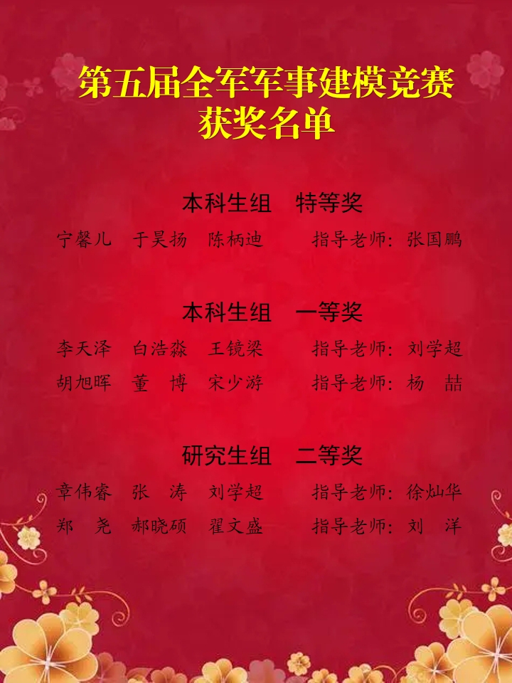 近日,第五届全军军事建模竞赛结果出炉,经过激烈角逐,beat365学员在3000余支参赛队伍中脱颖而出,斩获本科生组特等奖1项、一等奖2项,研究生组二等奖2项。