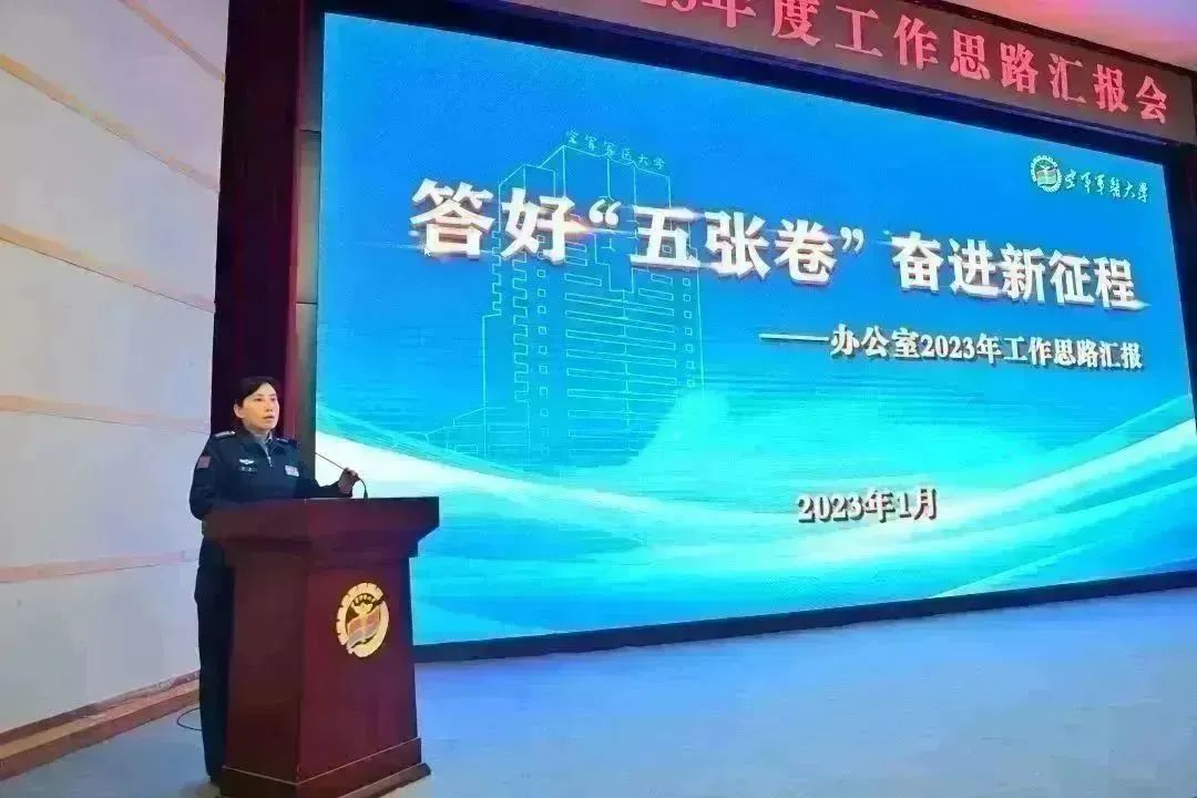 为进一步加强工作谋划、创新工作思路、推动工作落实,学校于1月4日下午召开2023年度工作思路汇报会,校领导、院士、机关处(办)领导、各单位军政主官、专家教授代表和机关干部共计300余人参会,特色医学中心、各附属医院和986医院设分会场。张思兵校长、王宝红政委和王东光副校长出席,杨春风副政委主持会议。