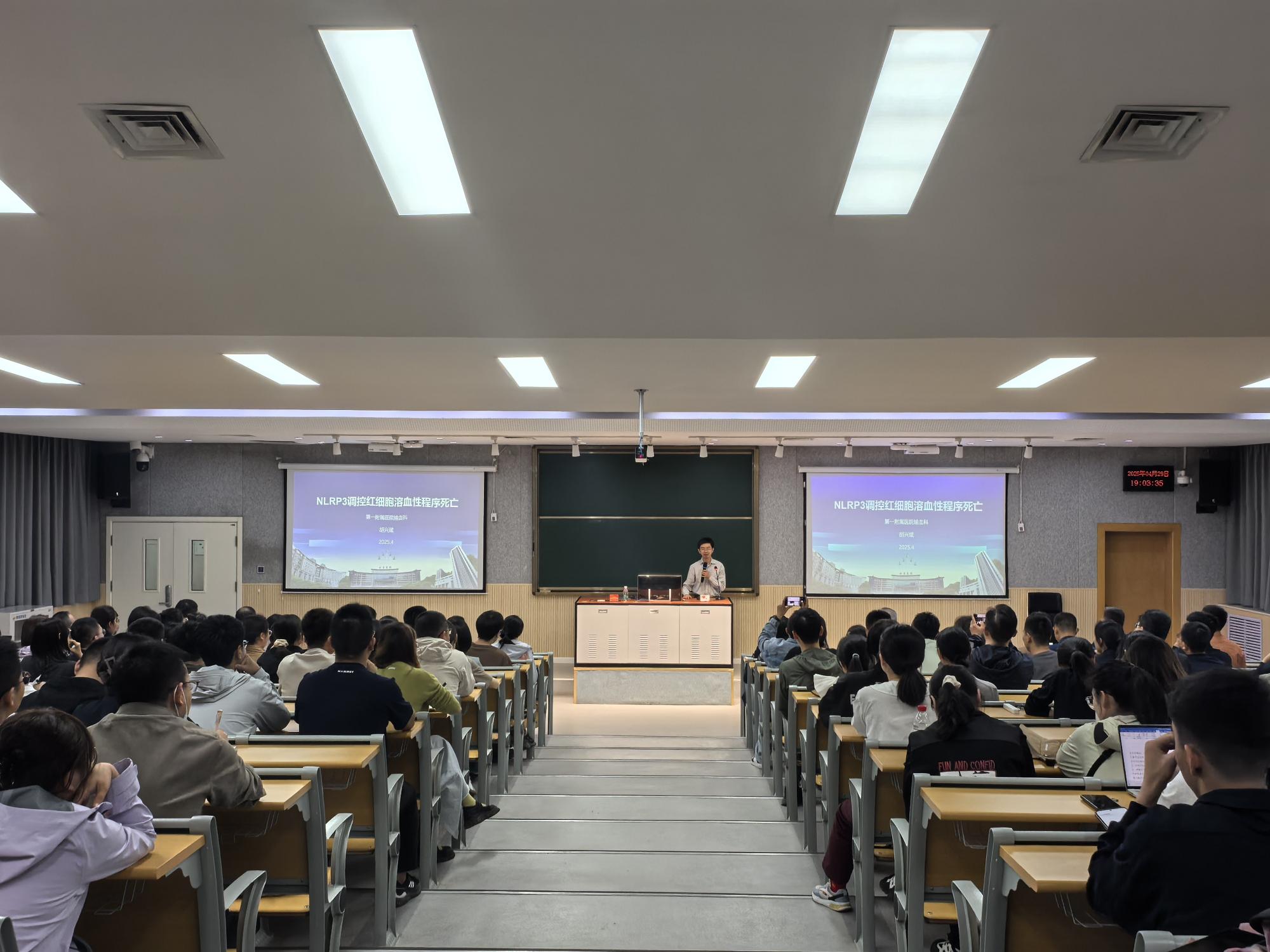 2025年4月29日晚,大学青年科技创新强训营学术讲座邀请西京医院输血科胡兴斌副教授分享其团队在国际顶刊《Cell》最新发表的突破性成果,韩骅、杨安钢、武胜昔、张丰、秦向阳等教授参与学术对话。现场座无虚席,氛围热烈,掌声此起彼伏,思维交织碰撞,为青年学者呈现了一场高水平的科研思想盛宴。讲座由科研学术处张学思副处长主持。