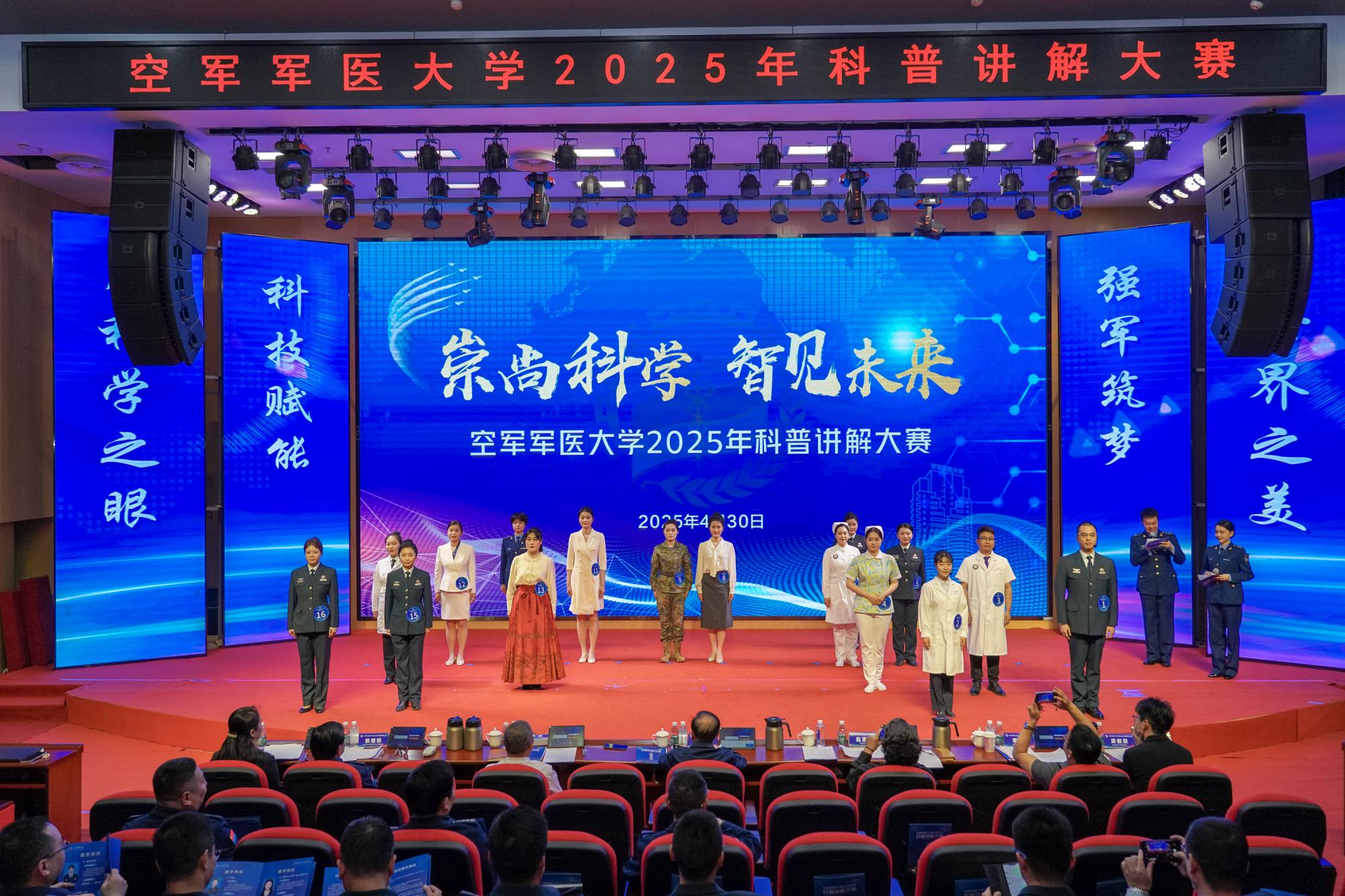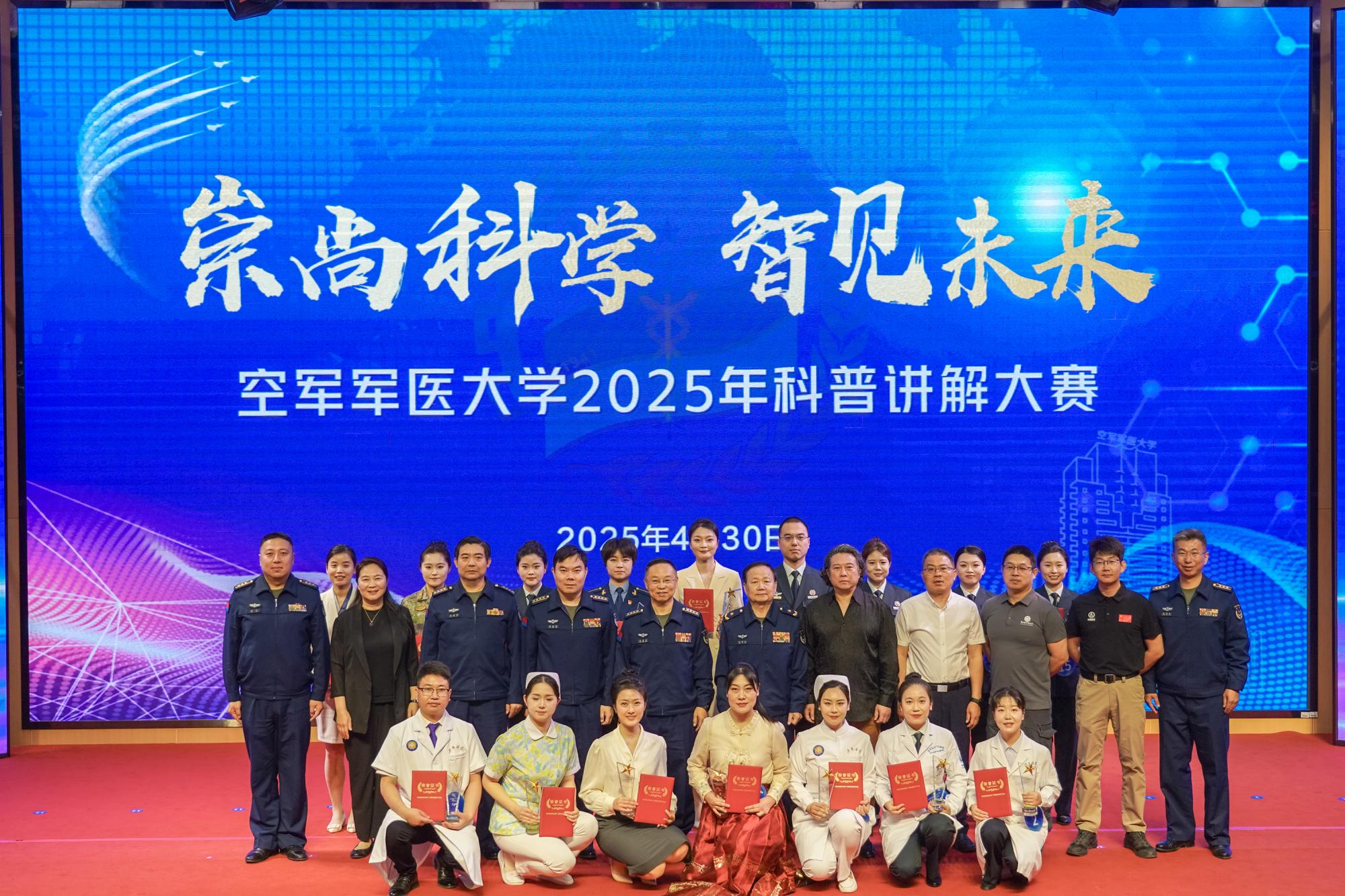 大赛邀请中国工程院赵铱民院士等军地知名专家担任评委,全校科普爱好者代表组成百人大众评委团。通过自我介绍、自主命题讲解环节,全面考察选手们的科普创意、专业功底和临场应变能力。经过激烈角逐,空军第986医院刘婧获得一等奖,基础医学院的陈迪和第一附属医院王哲获二等奖,基础医学院蒲雪茵、第三附属医院赵心越和护理系李洋获三等奖。同时,还产生了最佳人气奖、最佳创意奖和最佳风采奖。此次大赛与西安市、陕西省及全国科普大赛同步联动,优秀选手将直接推荐参加军地相关赛事。