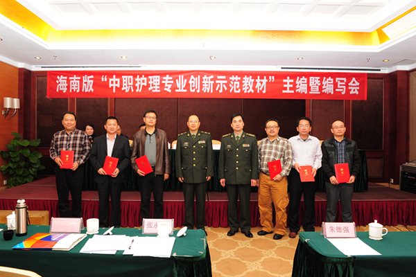 2015年1月24日,“海南版中职护理专业创新示范教材主编暨编写会”在海口市成功召开,来自海南省6所院校的120余位代表参加了会议。会上, 第四军医大学训练部扈国栋副部长代表主办方致辞;海南省医学会医学教育专业委员会主任委员、海南省卫生学校符史干校长作为院校代表发言,并对本套教材提出了一些建设性的思路;琼海市人民医院科教科王春茹科长作为用人单位,就教材的建设与护理岗位对接提出了建议;出版社富明社长为主编代表颁发聘书。