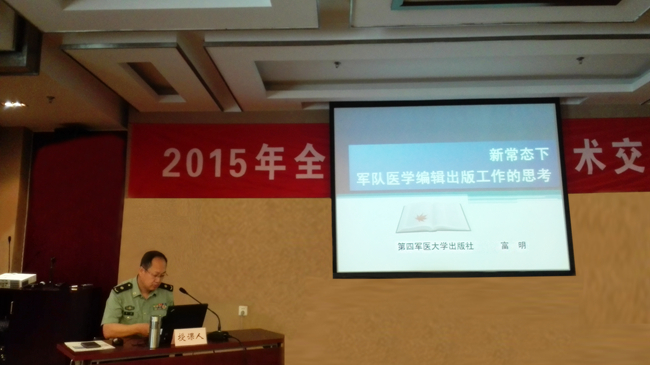 5月26-27日,由全军医学编辑学专业委员会主办的全军医学编辑学术交流会在上海召开。我社富明社长作为全军医学编辑学专业委员会的副主任委员参加了本次会议,并作为授课嘉宾,以“新常态下军队医学编辑出版工作的思考”为题,从新常态下编辑工作面临的现实问题以及编辑如何实现价值两个方面,为参加会议的全军医学期刊社、出版社负责人及编辑人员等118名会议代表授课。