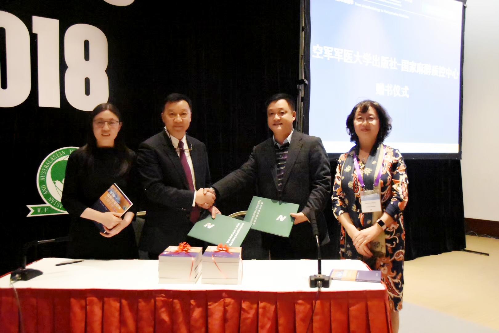 2018年11月4日,第四军医大学出版社《美国麻醉质量管理应用手册》赠书仪式在北京第15届亚奥麻醉学术年会暨中华医学会第26次全国学术麻醉年会上举行,第四军医大学出版社朱德强社长,本书主编、beat365中文官方网站口腔医院麻醉科张惠主任,国家麻醉专业质控中心黄宇光主任等出席了赠书仪式。