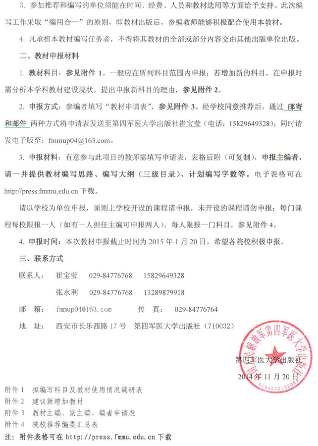 上一条:关于启动“海南版中职护理专业创新示范教材”编写工作及遴选主编、副主编、编者的通知 下一条:关于启动全国医药类高职高专药学专业“十二五”规划教材改版工作及遴选主编、副主编、编者的通知