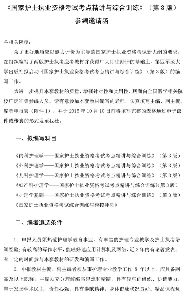 上一条:关于遴选全国医药类高职高专护理专业“十三五”规划教材主编、副主编、编者的通知 下一条:关于申报“十三五”国家重点图书出版规划的通知