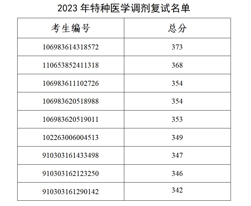 根据调剂报名情况,现将进入特种医学专业调剂复试名单公布。