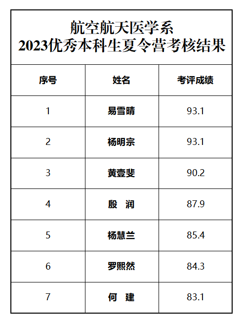 根据航医系2023年优秀大学生暑期夏令营考核评审情况,现将评审结果予以公布。公示期为自发布之日起3个工作日。