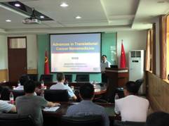 2018年7月1日,药学系邀请华中科技大学生命科学与技术学院杨祥良教授来beat365进行学术交流,并做了题为“Advancesin Translational Cancer Nanomedicine”的专题学术报告。会议由药学系药物化学与药物分析学教研室吴红主任主持,药物化学与药物分析学教研室、药剂学教研室、学校附属医院以及西安交通大学等教师和研究生参加了学术会议。报告中,杨祥良教授介绍了他的研究团队近年来在肿瘤靶向纳米药物方面的研究工作,重点介绍了他们在纳米药物临床转化与应用方面的成果。报告结束后,杨祥良教授与大家进行了热烈的讨论。