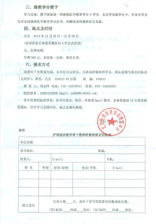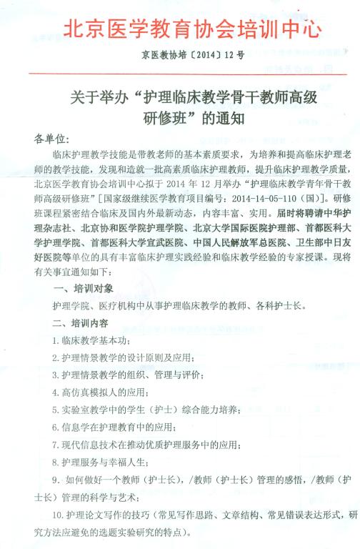 关于举办“护理临床教学骨干教师高级研修班”的通知