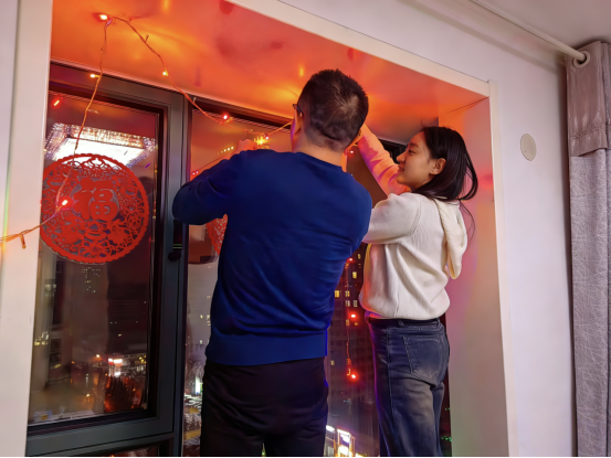 对于学员们来说,过年是一次彻底的“精神回血”。在肆意的时光中,理直气壮地“什么都不做”,只做爸妈的孩子,享受短暂的放松,为学业新征程积蓄起破土而出的蓬勃力量。春节期间,家家户户张灯结彩,千万面窗子五光十色、喜气洋洋,学员张卓怡分享了家乡山西的年俗:“挂彩灯是我们这里最有年味儿的习俗,我和爸爸站上窗台将彩灯高挂,妈妈退后几步在下面挥手指挥,欢声笑语伴着此刻的美满,这是最温馨的团圆时光。”