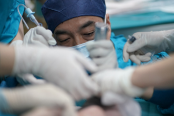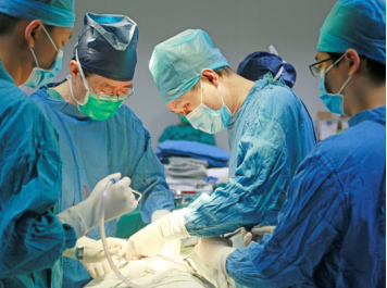 心血管外科刘金成主任(左)与团队进行心脏移植