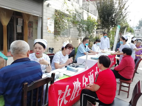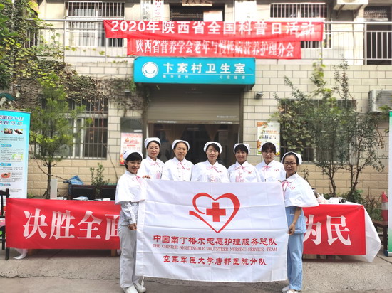 9月23日下午,唐都医院营养科王莎莎主任、陕西省营养学会老年与慢性病营养护理分会徐敏宁副主委及全体委员、营养科医生、部分志愿者一行15人,来到灞桥区席王街道卞家村,开展营养义诊及科普知识宣教活动。她们一边给村民做体检,一边询问身体状况,针对中老年人高血压、脑血管病多发的现状,给出营养膳食处方,并结合相关疾病知识宣教展板、2016年中国居民膳食指南核心推荐内容等为居民讲解营养相关知识,共接待义诊患者50余人,发放宣教手册200余份,发放控盐勺30余把。