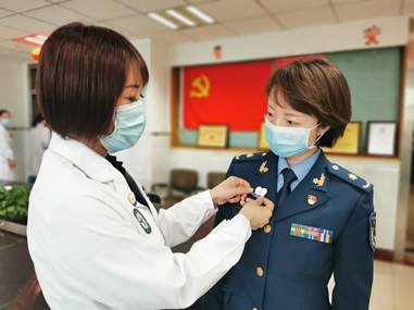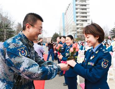 张侃院长、袁鹏政委为女性科室主任代表送花