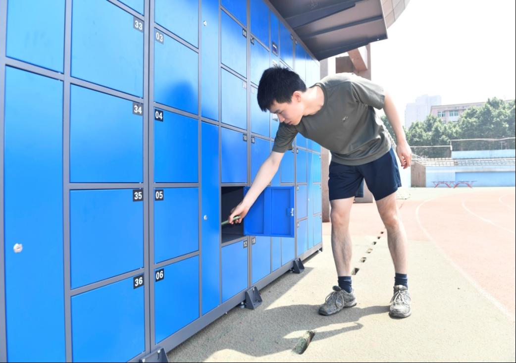 此次配置的指纹智能化储物柜位于军体馆内和田径场西北侧,具有方便、快捷、安全三大特点,柜体共6层,每层6个单元为一组,可同时满足上百人存放物品。相较于传统的储物柜,此次新增的智能化储物柜具有指纹识别功能,避免出现纸质凭证易丢失后的问题。经过现场测试,智能化储物柜2秒便可自动识别,开关迅速,存取便捷。