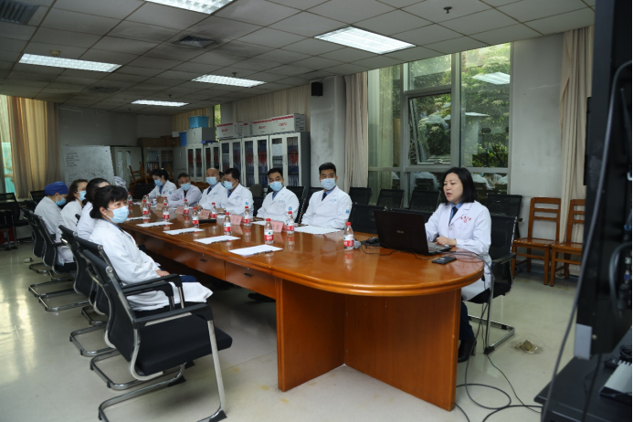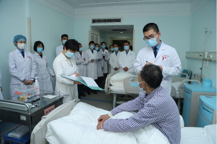 在心血管内科,范延红副教授主持“扩张型心肌病”教学查房,引导实习学员从心脏体格检查和病史采集着手,逐步抽丝剥茧,系统掌握疾病诊断流程、典型症状。陶凌主任结合科室实际,从教学改革探索、教学床位展开、教学人才培养等方面汇报了科室相关工作开展情况。