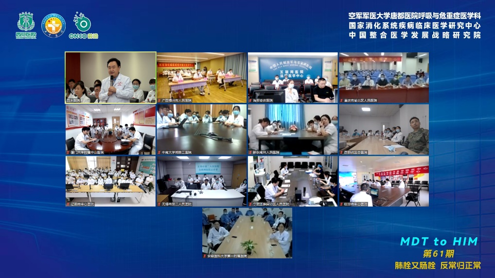 本场MDT to HIM讨论会以“肺栓又肠栓,反常归正常”为主题,唐都医院金发光教授担任主持,唐都医院呼吸内科、放射诊断科、普通外科、介入放射科、心血管内科、消化内科、超声诊断科等科室参会。