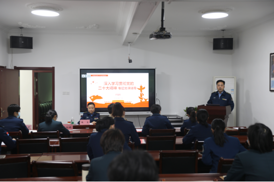 张立主任以《吹响全面建成社会主义现代化强国号角》为题,全景介绍了党的二十大报告的框架结构和核心要义,并围绕习主席强调的“五个牢牢把握”,以新颖的视角和深邃的理解,全面系统地讲解了报告中提出的新要求、新战略、新表述和新论断。党课主题鲜明、内涵丰富、思想深刻、重点突出,理论性、针对性和指导性强,引领大家进一步深化了对党的二十大精神的理解把握,更激发了每名同志勇挑重担的责任担当。