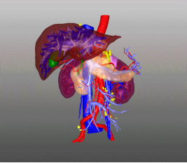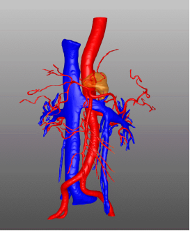 借助3D技术观察本例腹膜后肿瘤与周围组织器官、血管关系,详细评估病情,指导手术方案制定